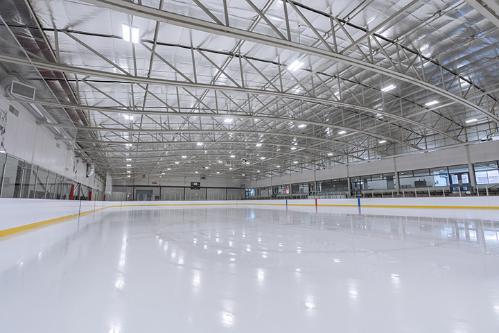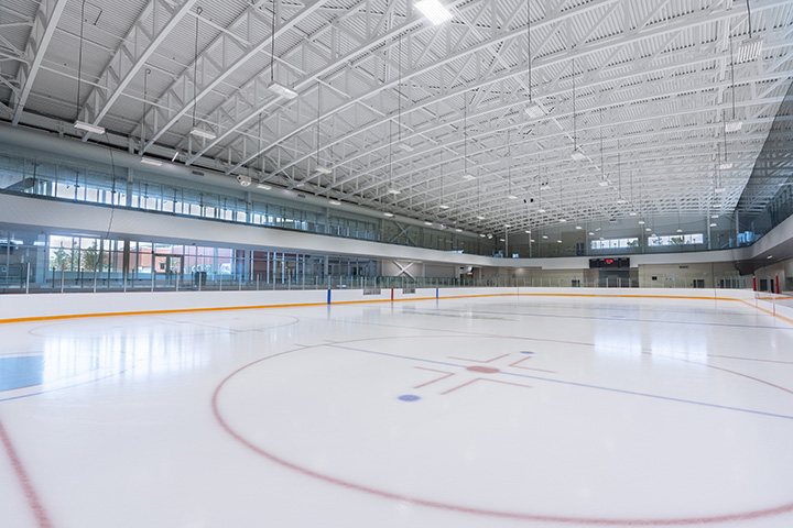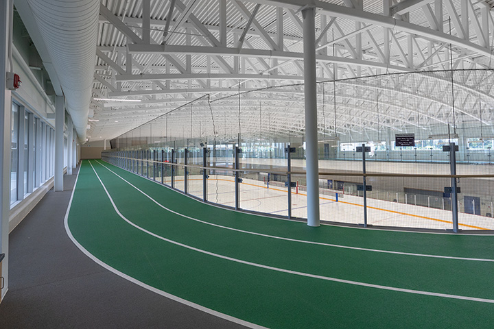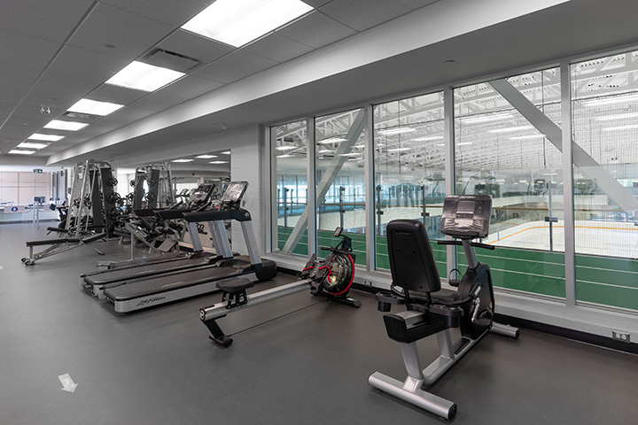 The newly renovated facilities feature an indoor walking track overlooking the NHL-sized hockey rink adjacent to a fully equipped cardio and strength-training facility.